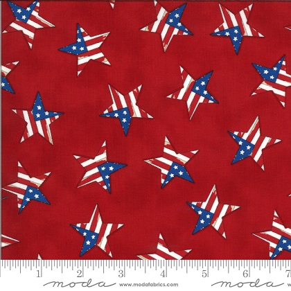 Moda - America The Beautiful - Tossed Flag Star, Red