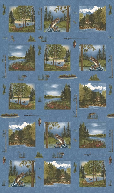 Moda - Lake Views - 24" Panel of 15 Scenic Blocks, Sky Blue