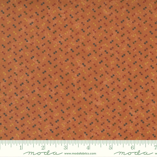 Maple Hill Collection embodies all the characteristics of fall with leaves, vines and geometrics in Kansas Troubles signature color palette. Warm gold and pumpkin accents balance deep reds and blues, and they are grounded with earthy greens and browns. Lighter tan prints, and tone-on-tones, offer contrast as backgrounds. The collection speaks of crisp fall air, cozy sweaters, beautiful fall foliage and evenings that carry the smell of smoke from a bonfire, and the sweetness of melting marshmallows. This fabric is perfect for a cuddly fall quilt you can enjoy with all your senses.