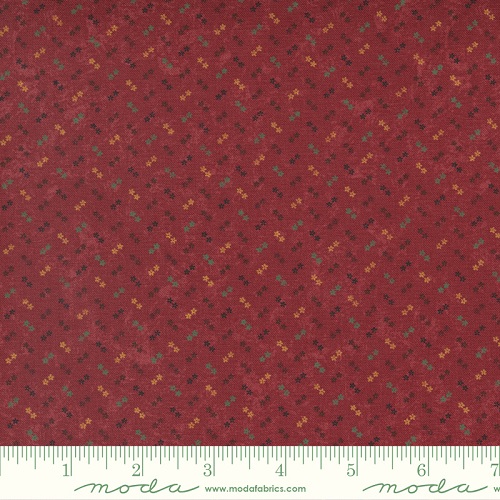Maple Hill Collection embodies all the characteristics of fall with leaves, vines and geometrics in Kansas Troubles signature color palette. Warm gold and pumpkin accents balance deep reds and blues, and they are grounded with earthy greens and browns. Lighter tan prints, and tone-on-tones, offer contrast as backgrounds. The collection speaks of crisp fall air, cozy sweaters, beautiful fall foliage and evenings that carry the smell of smoke from a bonfire, and the sweetness of melting marshmallows. This fabric is perfect for a cuddly fall quilt you can enjoy with all your senses.