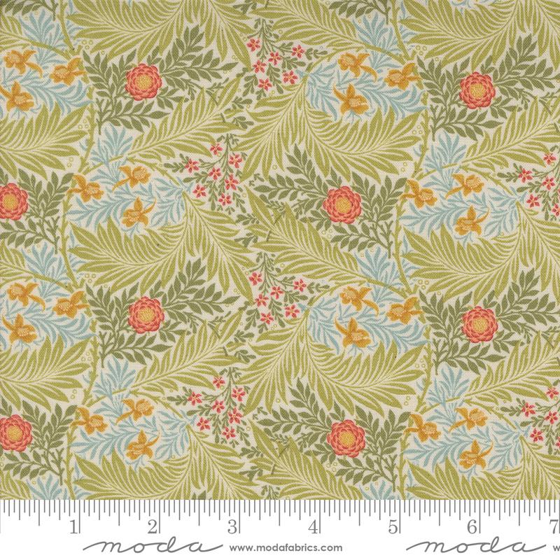 Morris Manor from Barbara Brackman is Moda's latest update of William Morris's classic design. The collection is named for the family's summer home Kelmscott Manor, a riverside house they began renting annually in the 1870s.