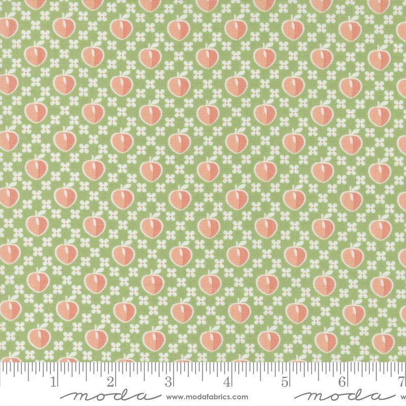 I have had a cobalt blue and coral colored fabric line in my head for several years. I pictured pretty flowers, sweet ginghams, dainty calico prints, polka dots, ginghams, and stripes all scattered across backgrounds in shades of blue, coral, and peach. I could just imagine adding in a beautiful green and one of my signature grays to round out the color palette. Now, I have brought this collection to life and I hope you love it as much as I do. I am so proud to present to you Peachy Keen! - Corey