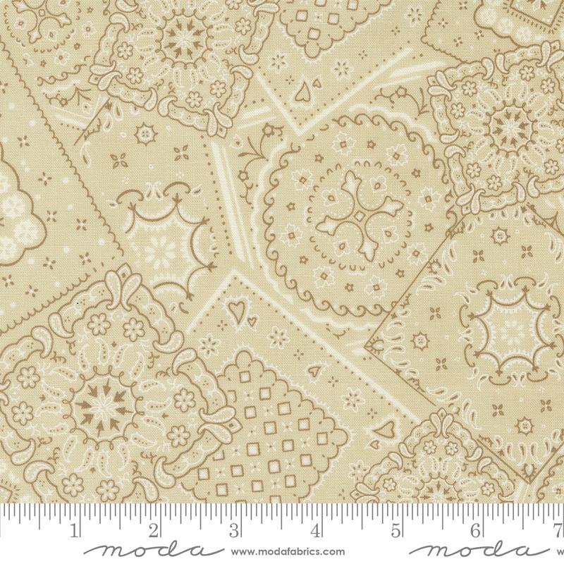 Rustle up a few projects with western flair using Moda's Saddle Ranch collection, featuring vintage cowboy toiles, rustic prints, saddle blanket and serape-inspired stripes, and a striking patchwork cheater print in tones of barn red, brass, turquoise, and denim.