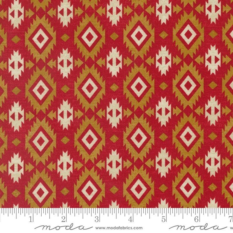 Rustle up a few projects with western flair using Moda's Saddle Ranch collection, featuring vintage cowboy toiles, rustic prints, saddle blanket and serape-inspired stripes, and a striking patchwork cheater print in tones of barn red, brass, turquoise, and denim.
