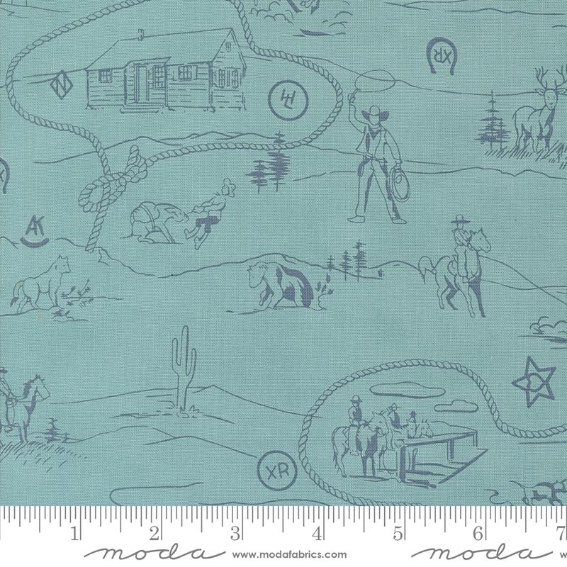 /Shopping/Fabric/Fabric (Shop By Manufacturer)/Moda/Saddle Ranch/Moda - Saddle Ranch - Western Toile, Pond