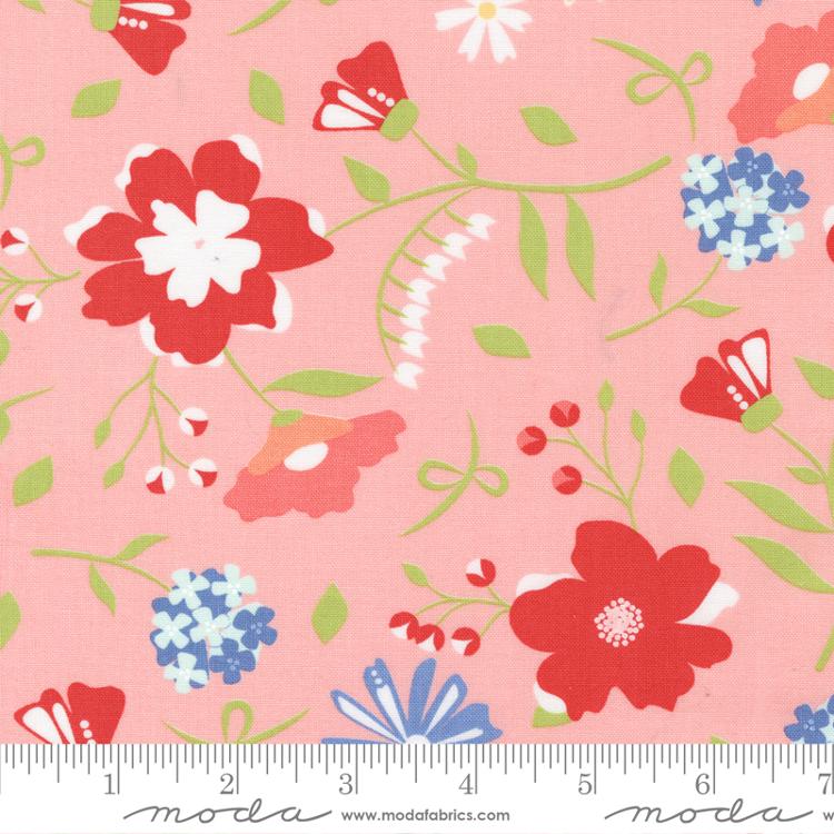 After the gray of winter, I am always ready for the riot of happy color that spring and summer bring. The rich reds, pink, oranges, yellow greens and blues of Sun Washed are a feast for the eyes. Filled with brightly colored flowers in every shade and size, busy bees, and the perfect picnic check, the collection also brings back the popular "x-print" in new colors. A summertime polka dot is the finishing touch for porch-ready quilts and pillows.