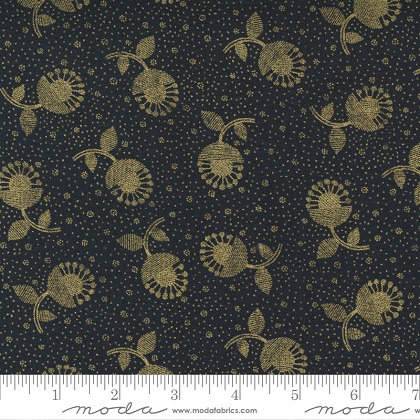 Moda - Whispers Metallic - Crazy Daisy, Black/Gold