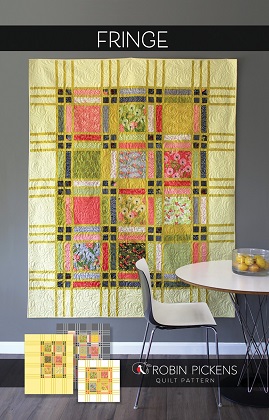 Fringe quilt pattern is a Layer Cake friendly pattern uses a grid structure with sashing that trials off into the borders like fringe edges. Quilts shown use Dandi Annie by Robin Pickens