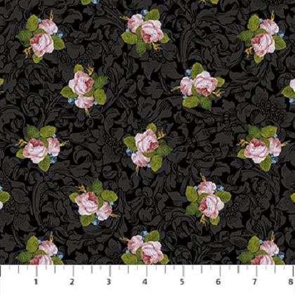 Northcott - Covent Garden - Rose Bud, Black/Multi