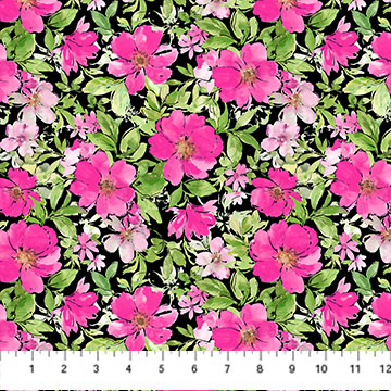 Northcott - From Paris With Love - Large Pink Floral, Black