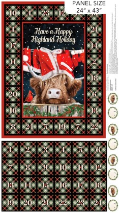 Northcott - Highland Heart - 24" Advent Calender Panel, Black