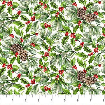 Northcott - Holiday Joy - Pine and Holly, Cream