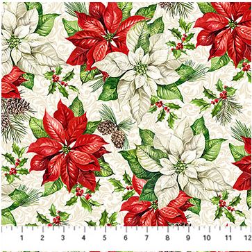 Northcott - Holiday Joy - Poinsettias, Cream