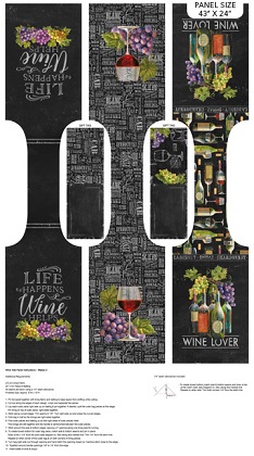 Created by talented duo, Ellen and Clark Studio, Life Happens, Wine Helps features beautifully illustrated wine bottles, grapes, and corks in a variety of prints. The 43" wide block print is running yardage. Use it as a cheater quilt or deconstruct to use as blocks in any project. The collection also features our new preprinted quick sew wine tote panel with 3 fabulous designs. Additionally, the collection includes a preprinted reversible apron panel that is super easy to make. A variety of mix and match prints complete the coordination.