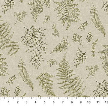 Northcott - Natural Elements - Large Tossed Fern, Taupe/Green