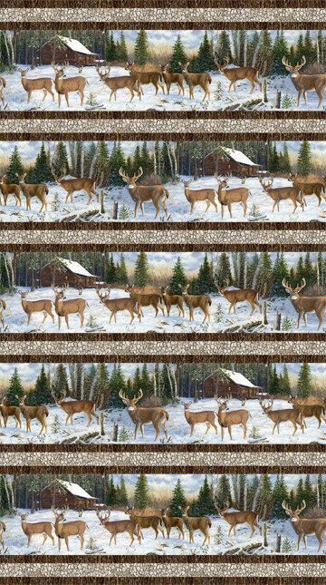 Pine Valley - Nature scape showcase a herd of gentle deer against a snowy wintry scene. Enjoy creating beautiful projects for the nature lover in your life, including a wall hanging with the 28" panel, pillow cases, curtains, etc. Designed By Terry Doughty