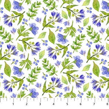 Northcott - Pressed Flowers - Blue Flower Toss, White