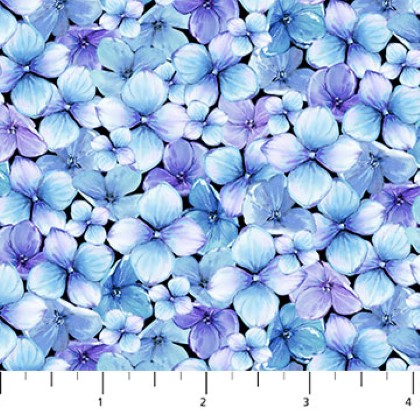 Northcott - Rhapsody in Blue - Packed Petals, Blue/Purple
