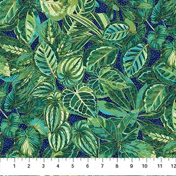 Northcott - Shimmer Paradise - Packed Leaves, Navy