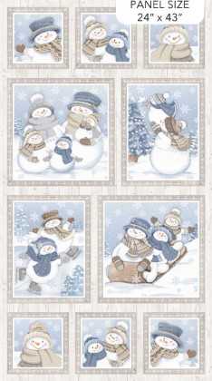 It is winter and time for Snow Much Fun! Printed on Northcott's premium quality flannel, this adorable collection featuring playful snowmen was created by Deborah Edwards. Finished with the border stripe, this panel is ideal for a quick sew lap quilt for someone special to cuddle up with. The panel is also ideal to deconstruct to use as blocks in another project. In addition to the wood grain and Nordic knit print, a variety of multi-directional mix-and-match prints including snowflakes and snowmen coordinate beautifully with the focal prints. A gentle palette of white, cream taupe and blue inspired by the modern farmhouse trend has a calming effect. Snuggle up and stay warm with Snow Much Fun.