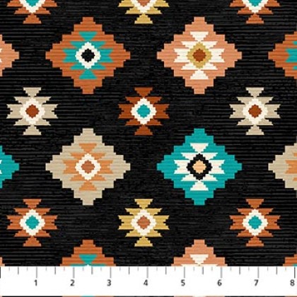The Southwest is rich in culture, magnificent panoramas, and vibrant color that excites the imagination and inspires design. Southwest Vista, designed by Deborah Edwards for Northcott Fabrics, celebrates the spirit of the Southwest in all its splendor with stunning vistas, artisan crafts, and desert jewels, where buffalo roam, mustangs run wild, and cacti pepper the landscape. Southwest Vista is beautifully illustrated in vibrant hues from turquoise and clay to tan and mustard with cream and charcoal accents.