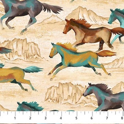 The Southwest is rich in culture, magnificent panoramas, and vibrant color that excites the imagination and inspires design. Southwest Vista, designed by Deborah Edwards for Northcott Fabrics, celebrates the spirit of the Southwest in all its splendor with stunning vistas, artisan crafts, and desert jewels, where buffalo roam, mustangs run wild, and cacti pepper the landscape. Southwest Vista is beautifully illustrated in vibrant hues from turquoise and clay to tan and mustard with cream and charcoal accents.