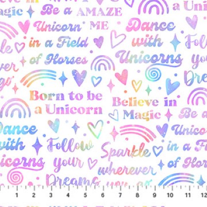 Northcott - Sparkle Magic - Words, White/Multi