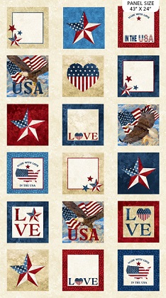 Northcott - Stonehenge Stars & Stripes 10 - 24" Digital Label Panel, Beige/Multi