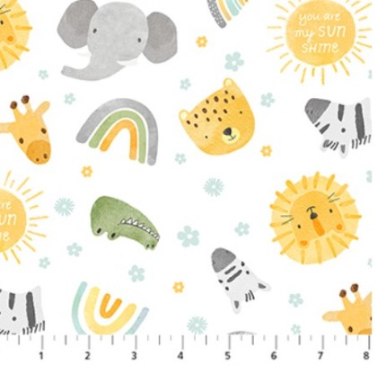 Quilt up the sweetest projects with these animals enjoying the sun! The Sunny Safari collection by Northcott Fabrics features lions, zebras and elephants along with rainbows, florals and other coordinates.