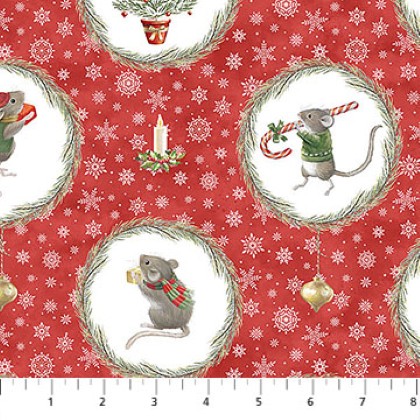 Sarah Summers' new collection, The Christmas Mouse is beautifully illustrated with exquisite detail. Adorable mice celebrating the season are featured decorating trees, baking treats, giving gifts, making music and playing in the snow. The collection includes blocks which can be used as is or deconstructed, a border stripe, a wintry scenic, tossed mice, wreaths and a variety of mix ad match coordinates. A palette of soft gray and white paired with red and sage characterizes the collection, creating an updated look with nostalgic overtones. The Christmas mouse is printed on our premium quality flannel with extra cuddle comfort.
