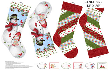 Welcome the winter season along with snowmen and the cardinals. The birdhouses and holly leaves are done in Christmas reds and greens. Also featured in this collection is an advent panel, Christmas stockings, a snowman panel, and a stripe. This collection also has all the coordinates to make a gorgeous winter project.