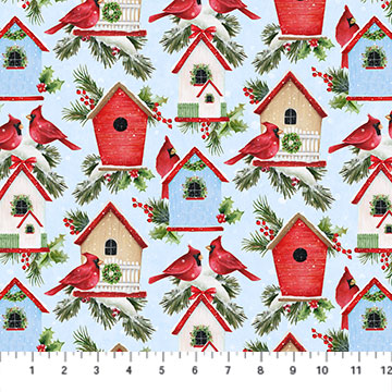 Northcott - Winter Welcome - Birdhouses, Pale Blue