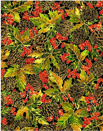 Oasis Fabrics - Change of Seasons - Pinecone & Leaf, Black