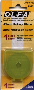 The replacement blade fits any OLFA® 45mm rotary cutter. (RB45-1, #9452)