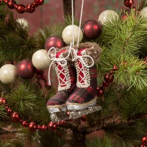 Ornament - Ice Skate Pair, Buffalo Check