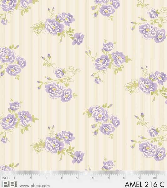 P & B Textiles - Amelie - Small Floral - Stripe, Lavender/Cream