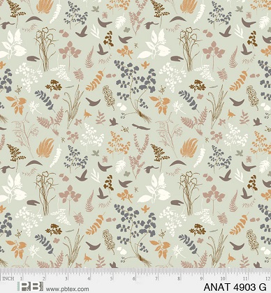 P & B Textiles - Au Naturel - Birds & Foliage, Green