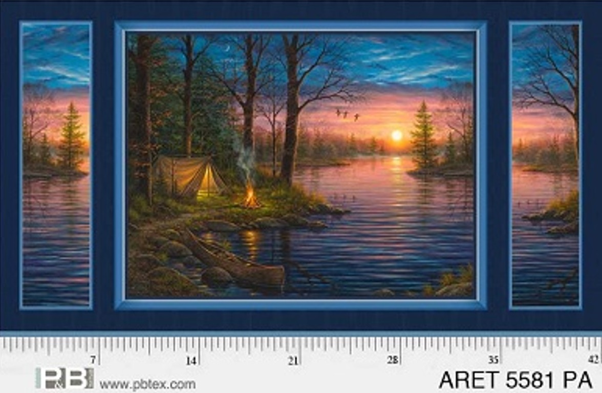 P & B Textiles - Autumn Retreat - 24" By the Lake Panel, Navy