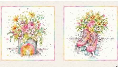 Easy-peasy summer days...one of Sally Walsh's thoughts as she was designing this enchanting, new collection. Her delightful art is highlighted in two panels...one with twelve small, rectangular blocks and the other a two-block pillow panel. There is also a beautiful double- border print that will inspire so many uses...skirts, aprons, table top, curtains, bed skirts and more. Pillow blocks are approximately 18 1/2" X 18 5/8" including 1/4" border. (2 Blocks per panel)