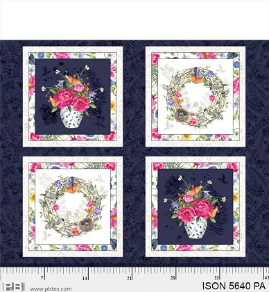P & B Textiles - Indigo Song - 36" Floral Blocks Panel, Multi
