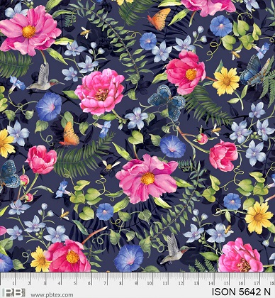 This collection IS spring! Sandy Lynam Clough's newest fabric collection is beautifully impactful and the color palette is stunning! 16" panel blocks will be ideal to use as napkins, table mats, or pillows and of course, they are ideal to use in quilts. Lucy Fazely has designed a queen-sized quilt, Indigo Bouquet, which will be the focus of any bedroom. The complimentary pattern is offered in both light and dark options.