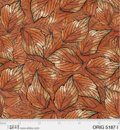 P & B Textiles - Origins - Allover Leaves, Burnt Orange
