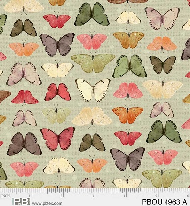 P & B Textiles - Petal Bouquet - Butterflies, Sage