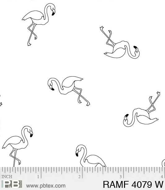 P & B Textiles - Ramblings Fun - Flamingos, White