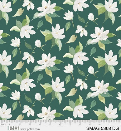 P & B Textiles - Sweet Magnolia - Tossed Floral, Dark Green
