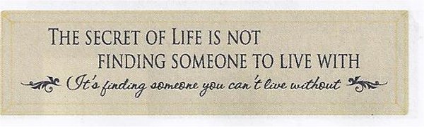 SIGN READS: THE SECRET OF LIFE IS NOT FINDING SOMEONE TO LIVE WITH IT'S FINDING SOMEONE YOU CAN'T LIVE WITHOUT