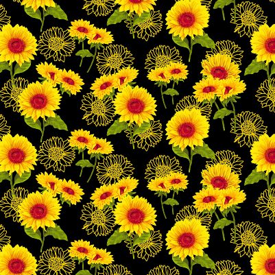 Print Concepts - Sunshine & Bumblebees - Sunflower Silhouettes, Black