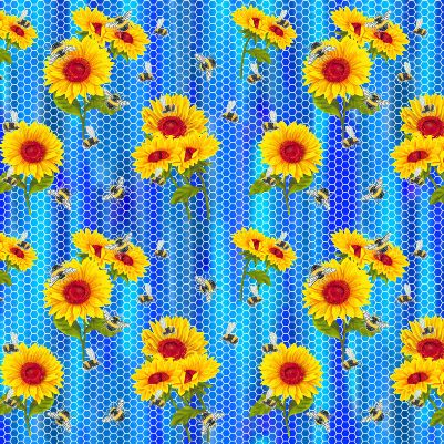 Print Concepts - Sunshine & Bumblebees - Sunflowers on Honeycomb, Blue