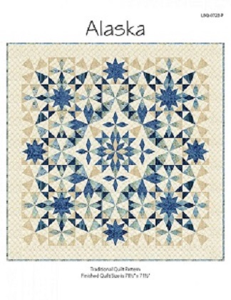 Alaska Quilt Size is 71.5in x 71.5in. This beautiful quilt looks wonderful in any color combinations. It is perfect for a block of the month project and uses just 6 fabrics for the entire quilt. The pattern includes paper templates to complete the project.