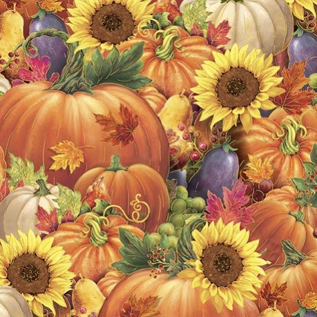 Quilting Treasures - Always Give Thanks - Pumpkins & Sunflowers, Orange